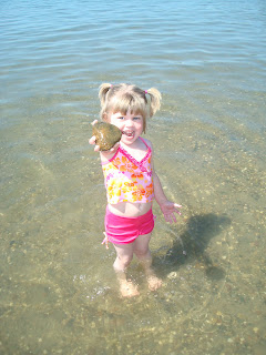 I've quickly realized the last week that when playing outside with Mallory, I am most comfortable near some sort of water. This of course means that I have to wear a swimsuit. Normally I am not one to draw many people who "check me out" while I am wearing a swimsuit. Usually there is nothing too exciting to see, that is until you add a big ol' baby belly. So now I am noticing some gazers. Oh well, take the looks while I can get them right?